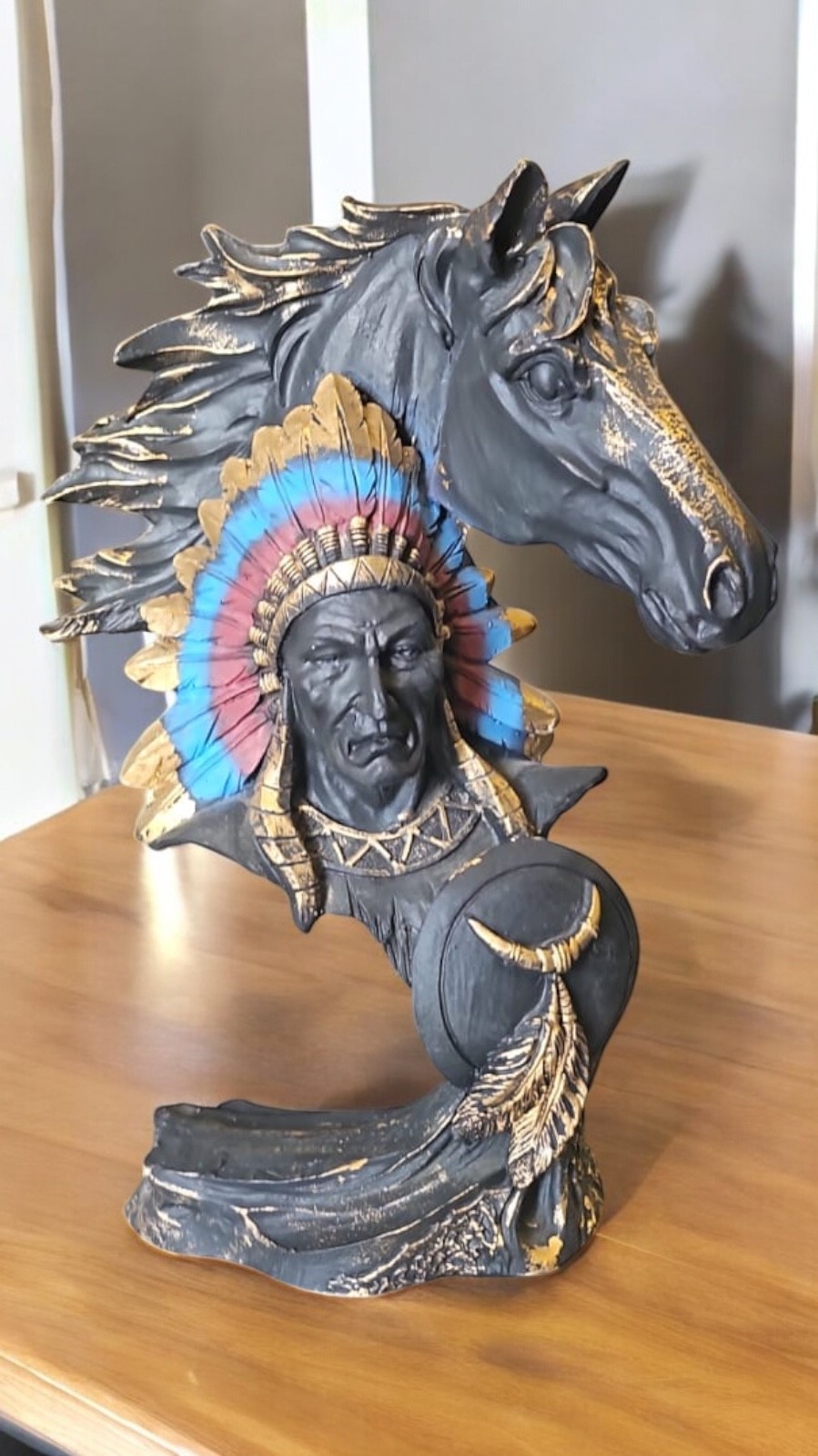 Atlı Kızılderili Dekoratif Obje Biblo, ev ve ofis dekorasyonunda tarih ve estetiği bir araya getirmek isteyenler için ideal bir seçimdir. Kültürel mirasa ilgi duyanlara anlamlı bir hediye olarak da sunulabilir.