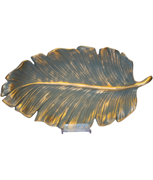 51x28 cm ölçülerinde yaprak şeklinde yassı tabak biblo.
