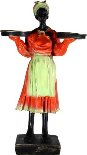 13x30 cm ölçülerinde iki elinde tepsi tutan afro amerikalı kadın dekoratif obje.