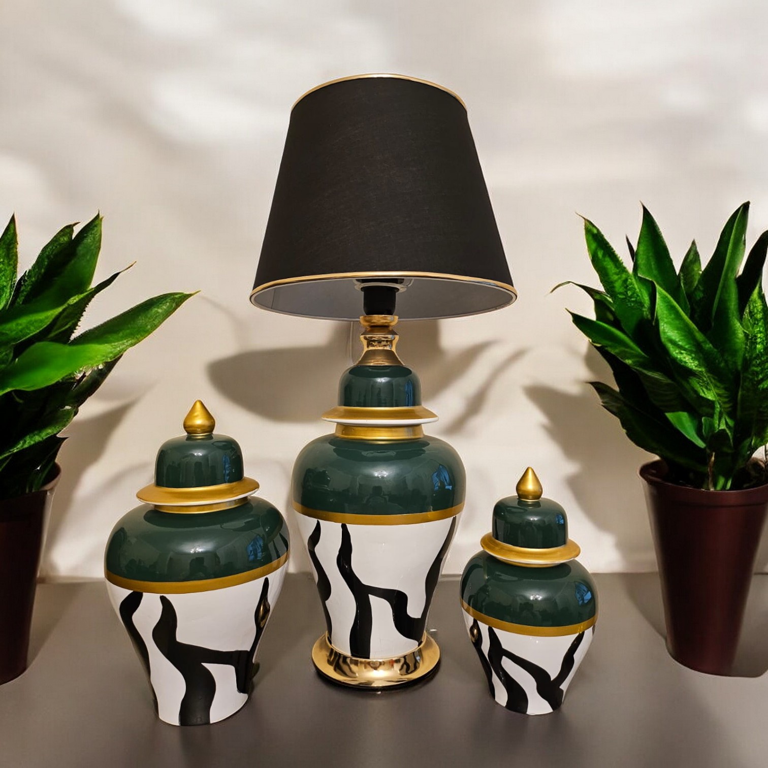 Üçlü Set Seramik Porselen Karışımı El Boyaması Abajur – Sanat ve Şıklığın Buluştuğu Eşsiz Aydınlatma